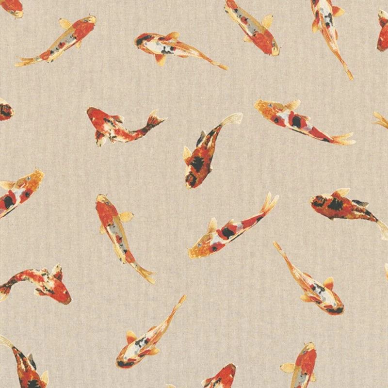 SALE Cotton Rich Linen Look Fabric Koi Carps Fish Fishes Upholstery