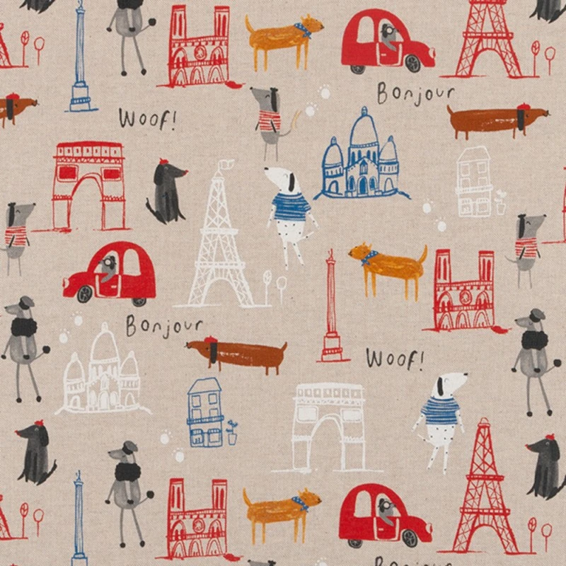 SALE Cotton Rich Linen Look Fabric Paris Landmarks Bonjour Upholstery