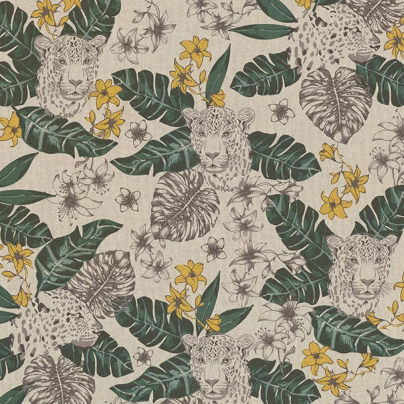 SALE Cotton Rich Linen Look Fabric Tropical Leopard Leaves Upholstery