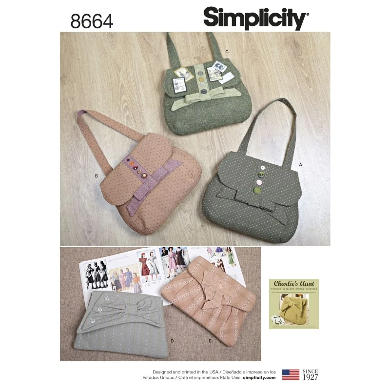 Vintage inspired bags. Includes clutches and shoulder bags. Charlie’s Aunt for Simplicity.