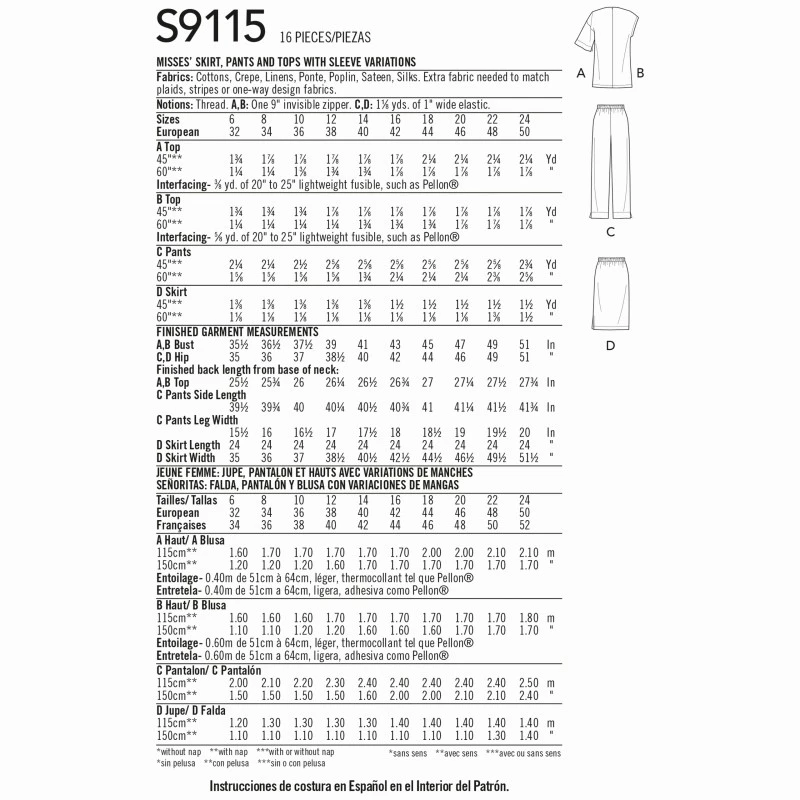 S9115 Tunic Top, Trousers and Skirt with Variations