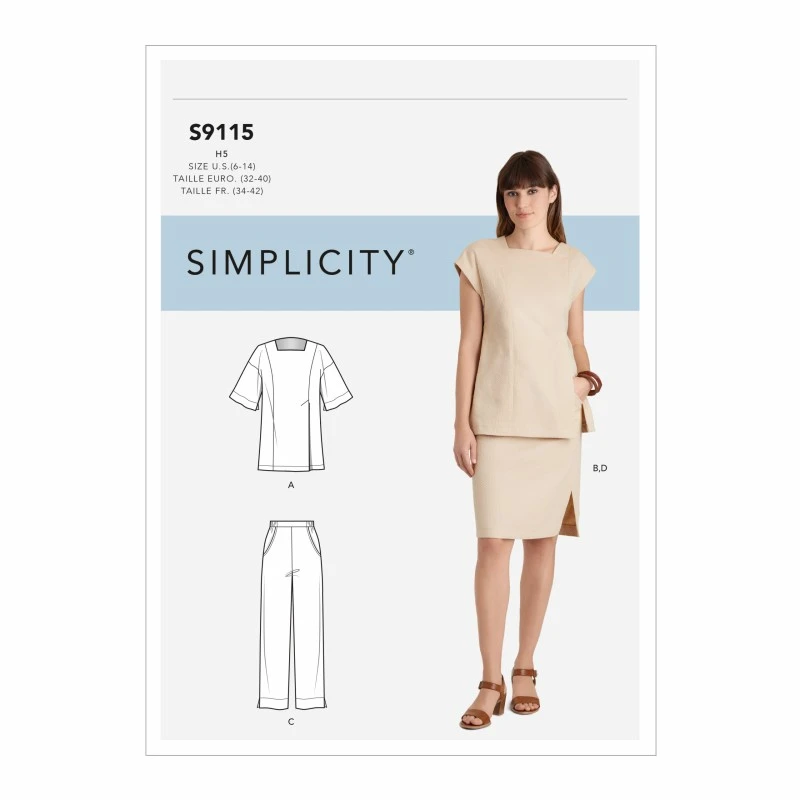 Simplicity Sewing Pattern S9115 Tunic Top, Trousers and Skirt with Variations