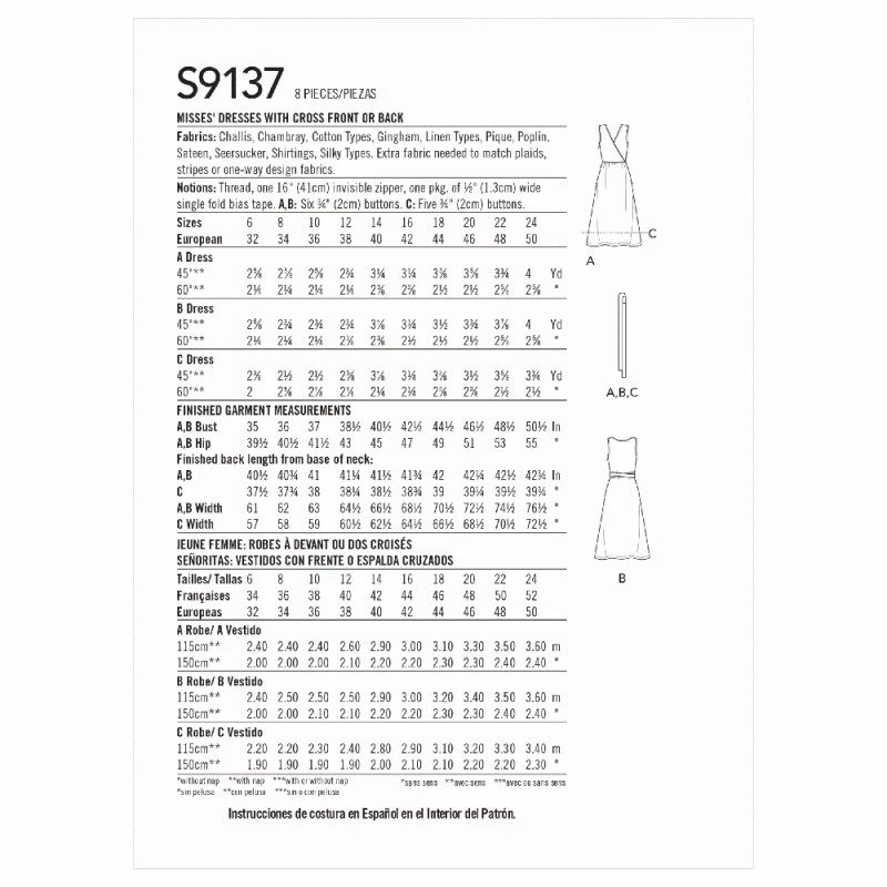 Butterick Sewing Pattern 6589 Misses’ Faux Wrap Gathered Dress