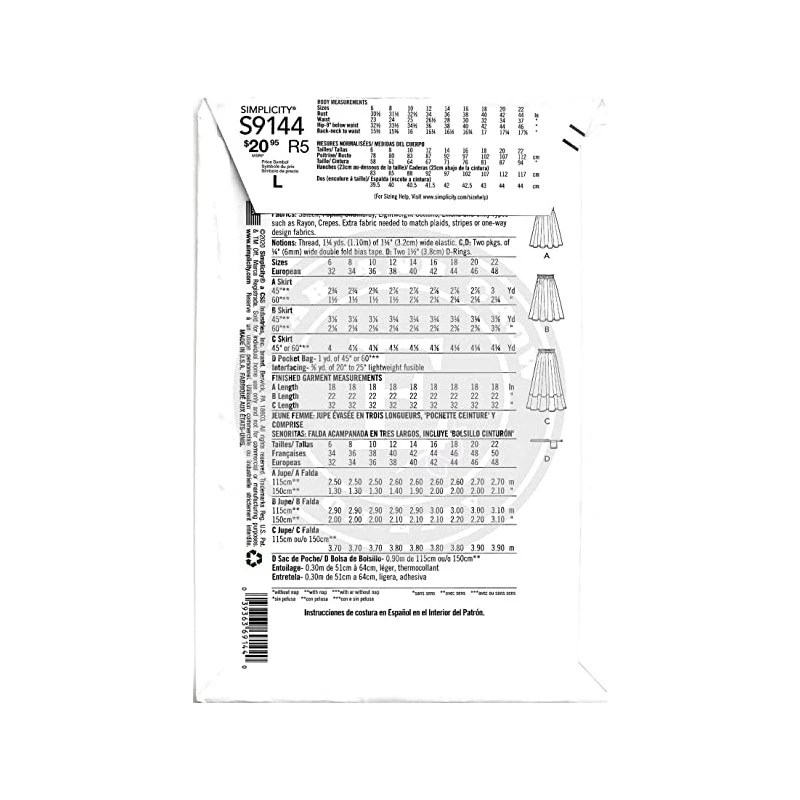 Simplicity Sewing Pattern S9144 Misses Circle Skirt in 3 Lengths Pocket Belt
