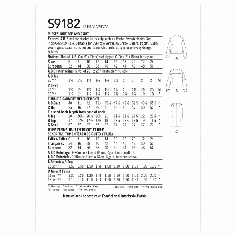 Simplicity Sewing Pattern S9182 Misses’ Top & Slim Skirt Front Slit By Mimi G