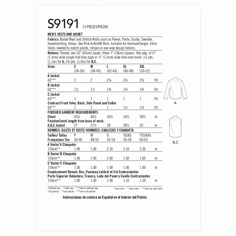 Simplicity Sewing Pattern S9191 Men’s Waistcoats And Jacket With Stand Collar