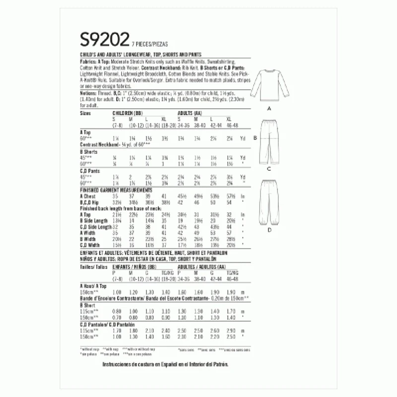 Simplicity Sewing Pattern S9202 Loungewear, Top, Shorts And Trousers