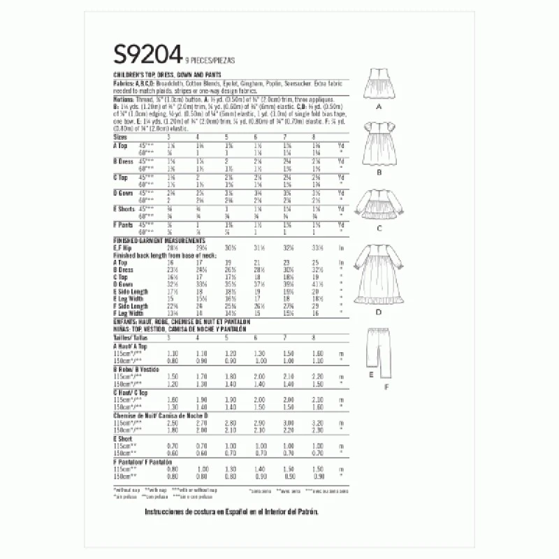Simplicity Sewing Pattern S9204 Children’s/Girls’ Gathered Detail Nightwear