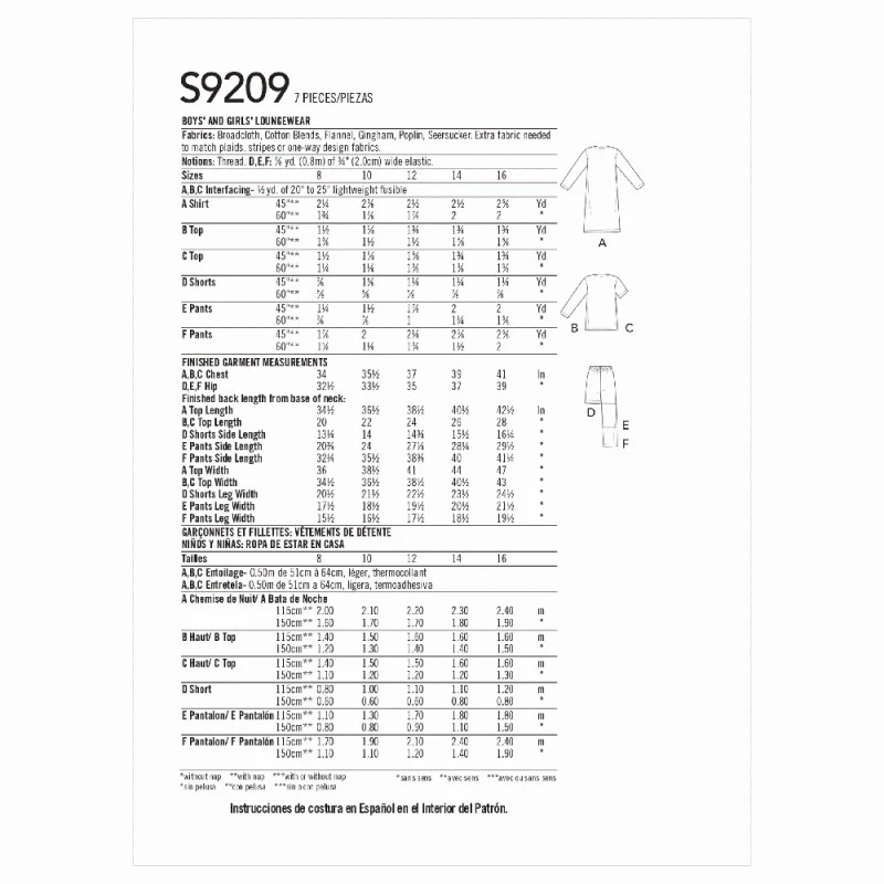 Simplicity Sewing Pattern S9209 Boy/Girl Loungewear Top Shorts Not For Sleepwear