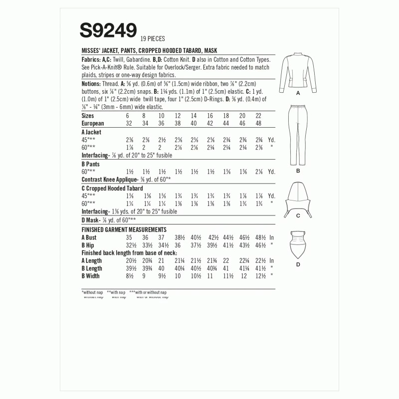 Misses’ Jacket, Cropped Hooded Tabard, Mask