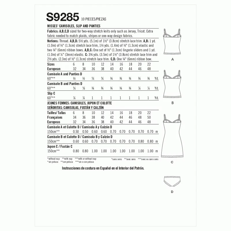 Simplicity Sewing Pattern S9285 Misses’ Lace Trimming Camisoles, Slip & Panties