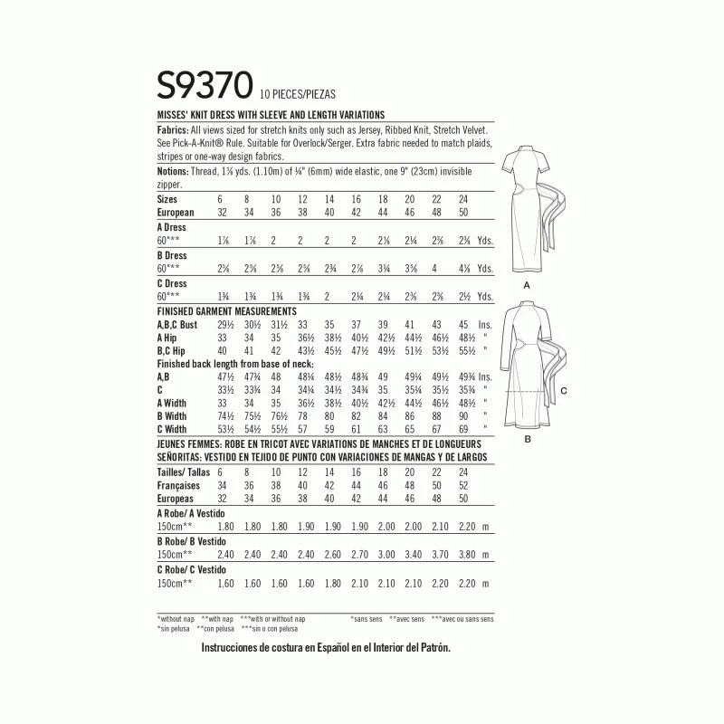 Simplicity Sewing Pattern S9370 Misses’ Knit Dress Sleeve and Length Variations