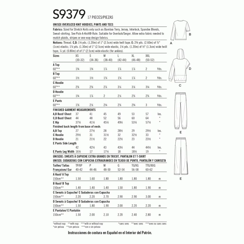 Simplicity Sewing Pattern S9379 Unisex Oversized Knit Hoodies Trousers Casual