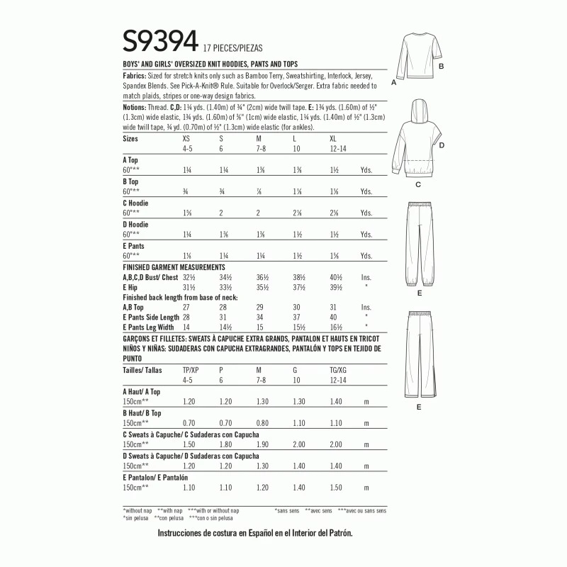 Simplicity Sewing Pattern S9394 Boys Girls Oversized Knit Hoodies Trousers Tops