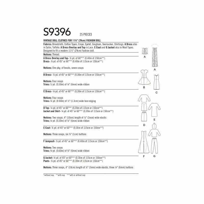 Simplicity Sewing Pattern S9396 Vintage Doll Clothes for 11 1/2″ Doll