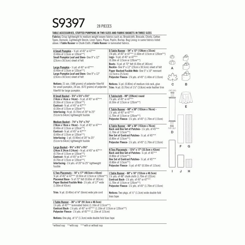 Simplicity Sewing Pattern S9397 Table Cloth Runners Place settings Autumn Theme