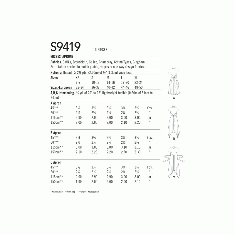 Simplicity Sewing Pattern S9419 Misses’ Vintage-style Aprons with variations