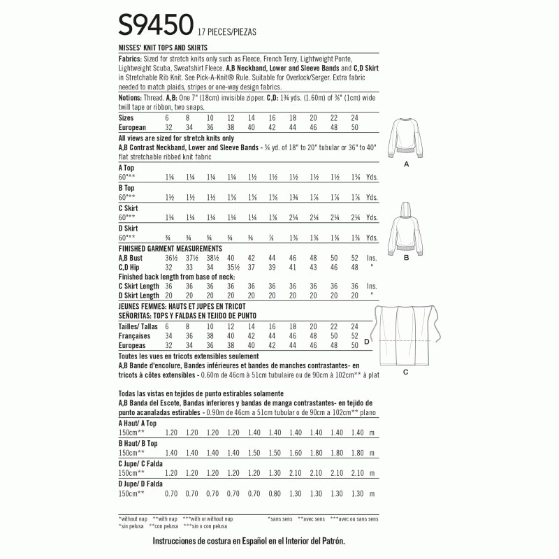 Mimi G Misses’ pull-over knit tops with and without hood, have raglan sleeves and pockets. Wrap skirt in two lengths has shaped front detail and ties. Designed for stretch knit fabrics. Follow Mimi G for constrution tutorials. Sewing Skill rating: Average.