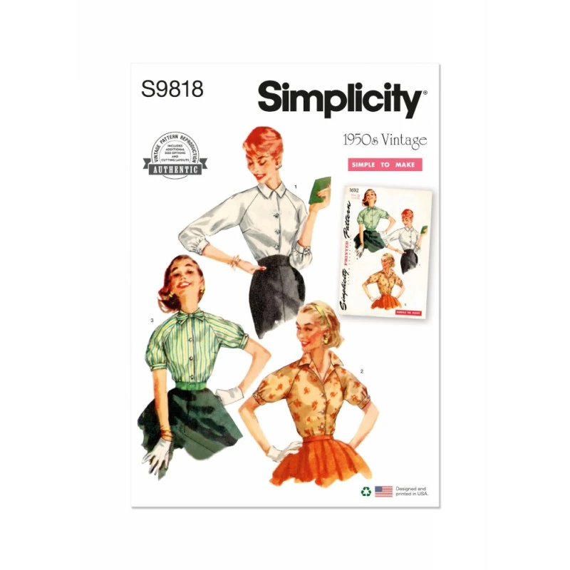 Simplicity Sewing Pattern S9818 Misses’ Vintage 1950s ‘Simple To Make’ Blouses