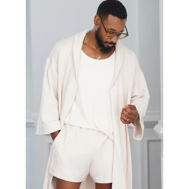 Men’s Easy Loungewear Set Robe, Knit Tank Top, Trousers and Shorts by Norris Danta Ford