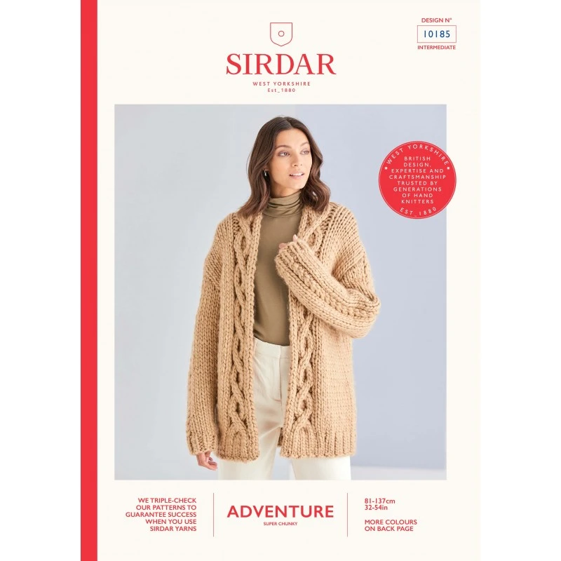 A super chunky cardigan in Sirdar Adventure in a relaxed edge to edge shape with dropped sleeves.