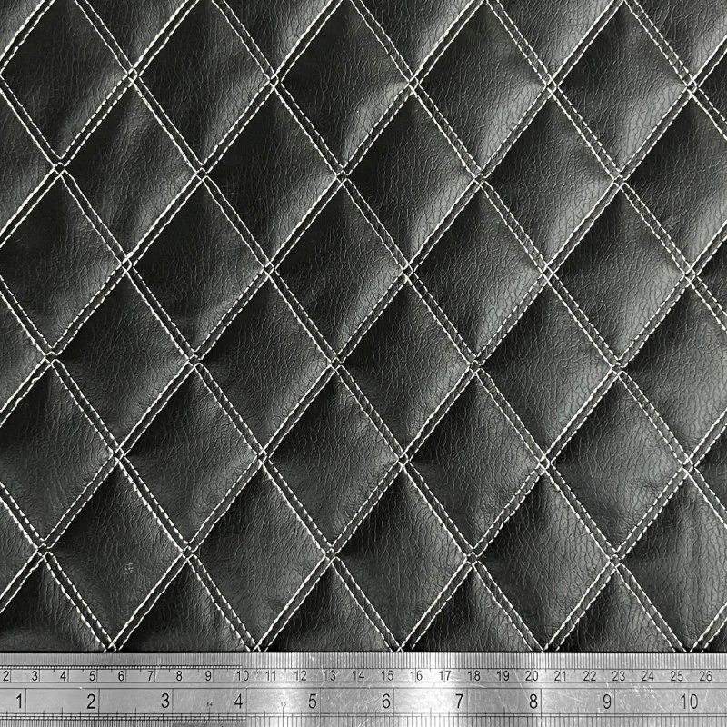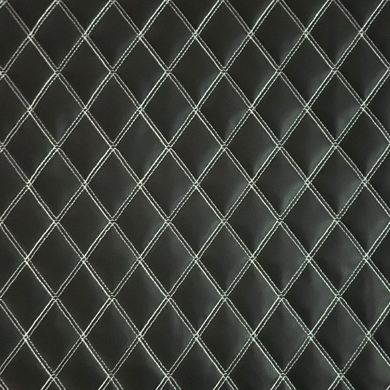 Our Stitched Vinyl Diamond Trellis Faux Quilted Leatherette is a luxurious three-layer fabric featuring genuine embroidery stitching for an elegant quilted effect. With a soft-touch PU leather surface, wadding backing, and a reinforcing fabric layer, this material is designed for both durability and style.