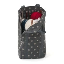 Hobby Gift Knitting Bag Grey Linen Polka Dot Craft Project Long Bag