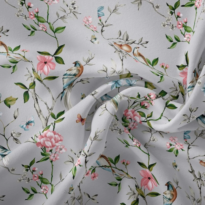 Let your designs take flight with the Crafty Panama Teflon Blossom Birds fabric, where beauty meets practicality.