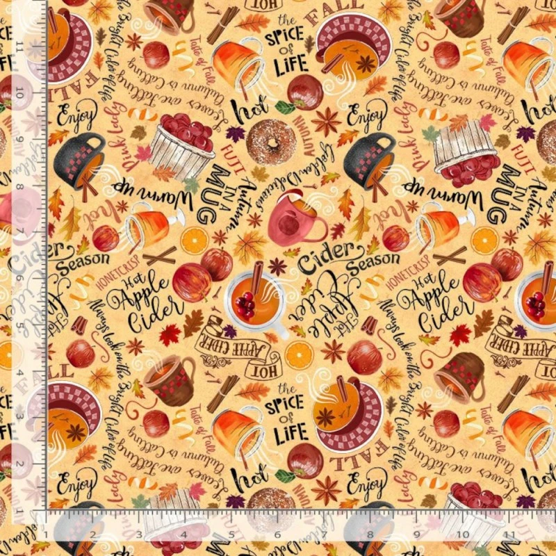 Timeless Treasures Fabric Apple Cider and Text Cotton Digital 112cm Wide CD2919: