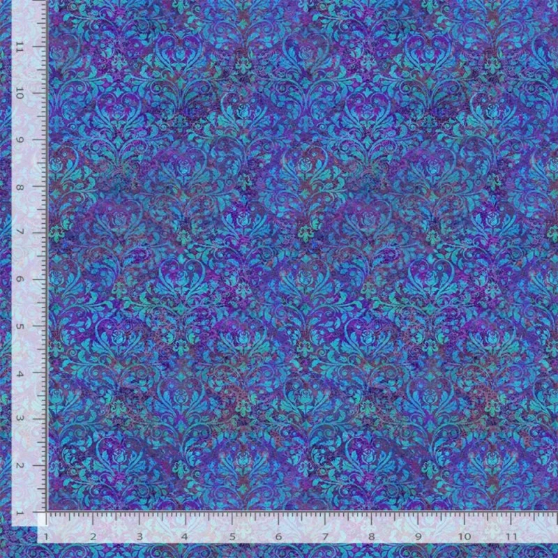 Peacock Damask Wallpaper is a 100% cotton digital print that features an intricate floral damask design in shades of blue and purple. The elegant, swirling vines and stylized flowers form a repeating motif that adds depth and sophistication to any project. 💐