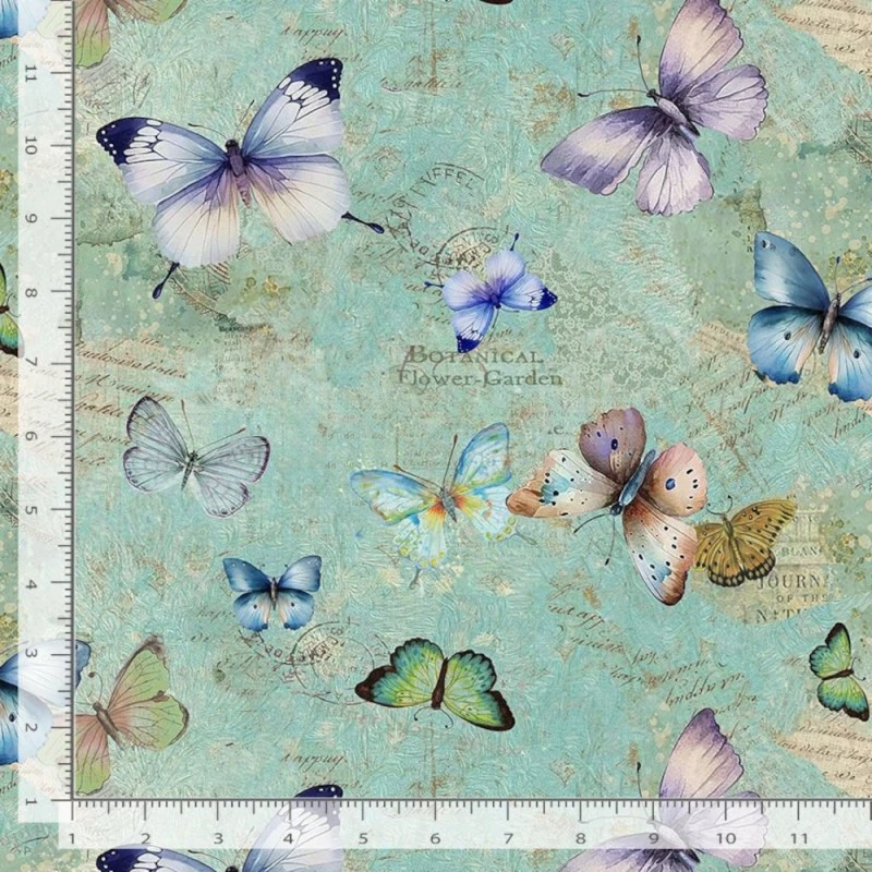 Timeless Treasures Fabric Pretty Butterflies & Text Cotton Digital 112cm Wide CD2907: