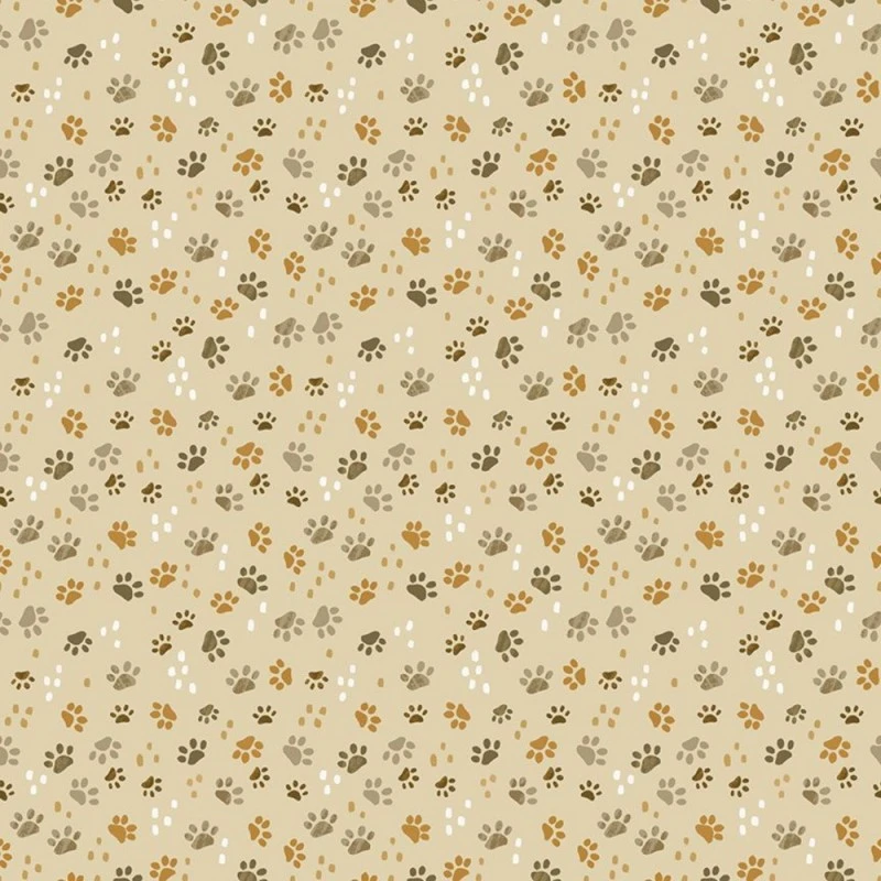 Tossed Cat Paw Prints fabric features a playful pattern of paw prints in shades of brown and white on a light brown background. πΎ This delightful design is perfect for cat lovers and those looking to create fun, pet-inspired projects.
