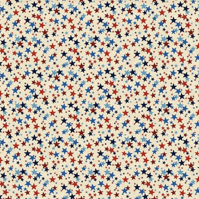 The USA Mini Stars fabric is a delightful 100% cotton digital print, showcasing stars in shades of red and blue set against a soft cream background. 🇺🇸⭐