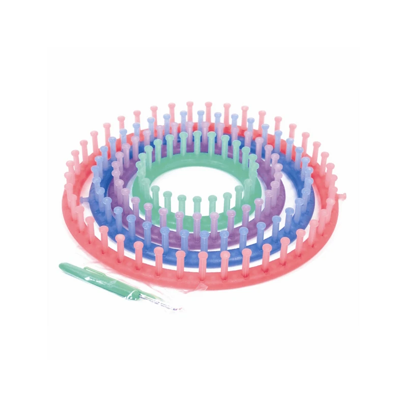 Also, great for extra-thick scarves and bags. 4 circular looms: 14, 19,24 and 29 cm). Colour-coded for easy reference.