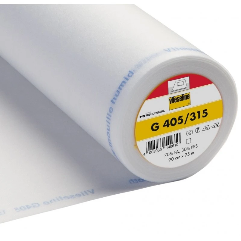 Soft interlining with stabilising vertical threads; suitable for front and small parts of garments.