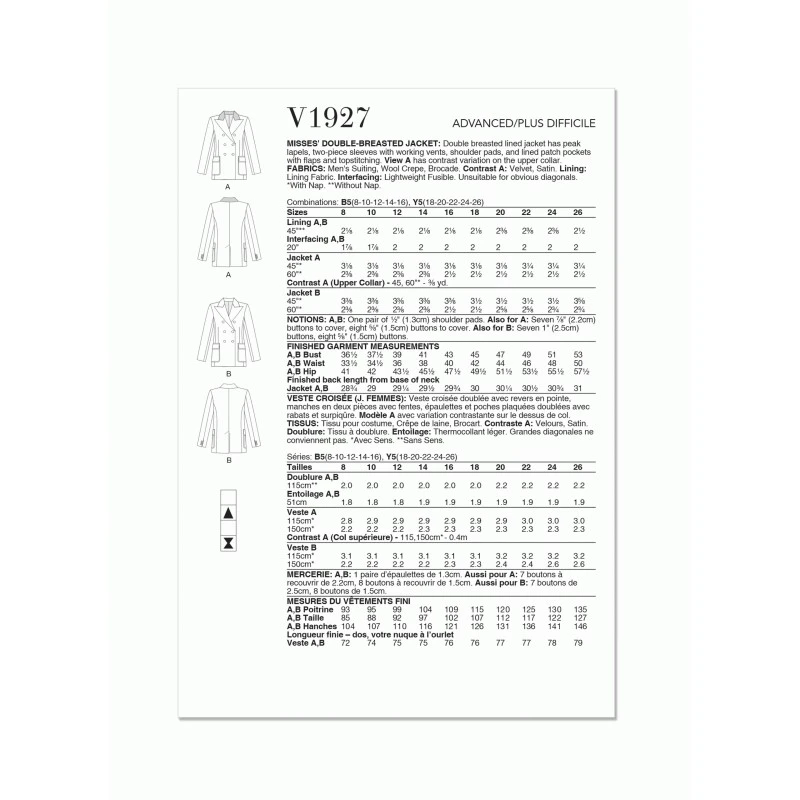 Vogue Patterns V1927 Misses’ Double-Breasted Jacket