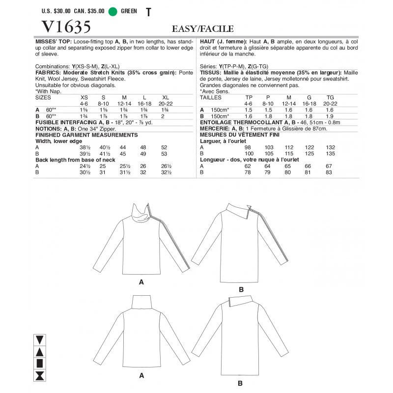 Vogue Sewing Pattern V1635 Misses’ Top Asymmetrical Long Sleeve