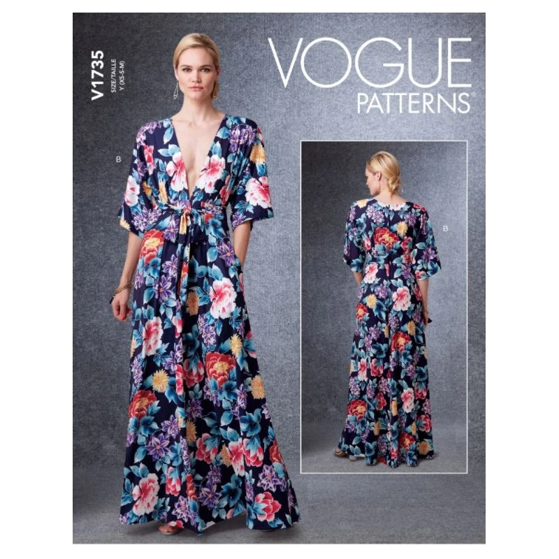Vogue Sewing Pattern V1735 Misses’ Plunge V Neck Dress Zip Back Opening