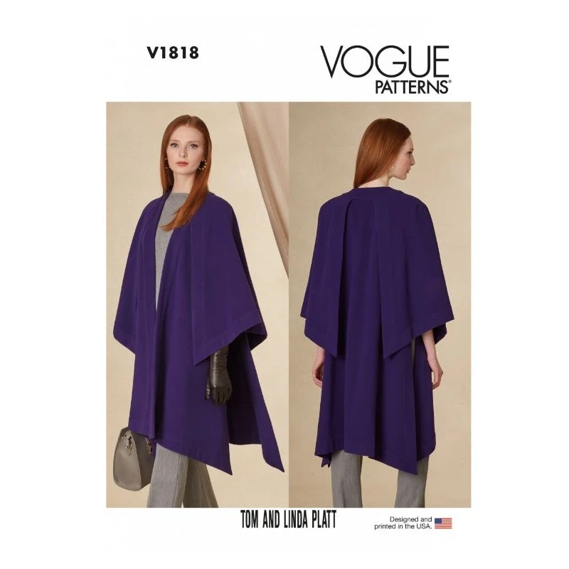 Vogue Sewing Pattern V1818 Misses’ Cape Loose Fitting Unlined, Shaped Neck