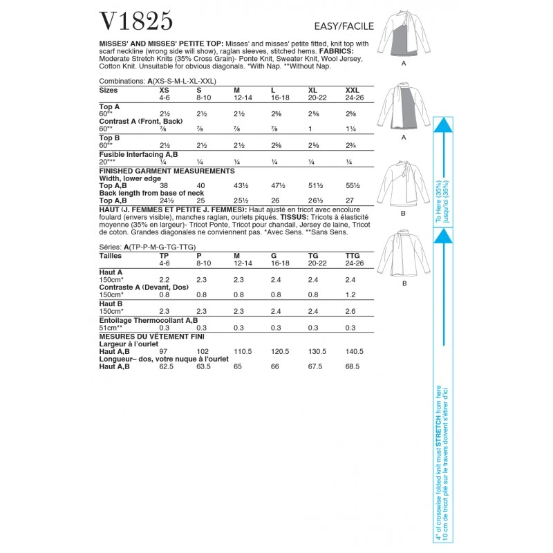 Vogue Sewing Pattern V1825 Misses’ Petite Fitted Knit Top Scarf Neckline