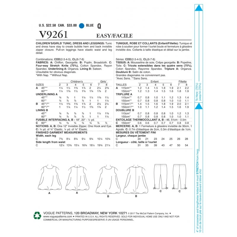 Tunic and dress have stay to create bubble hem and back invisible zipper closure. Pull-on leggings have elastic waist and leg detail.Â