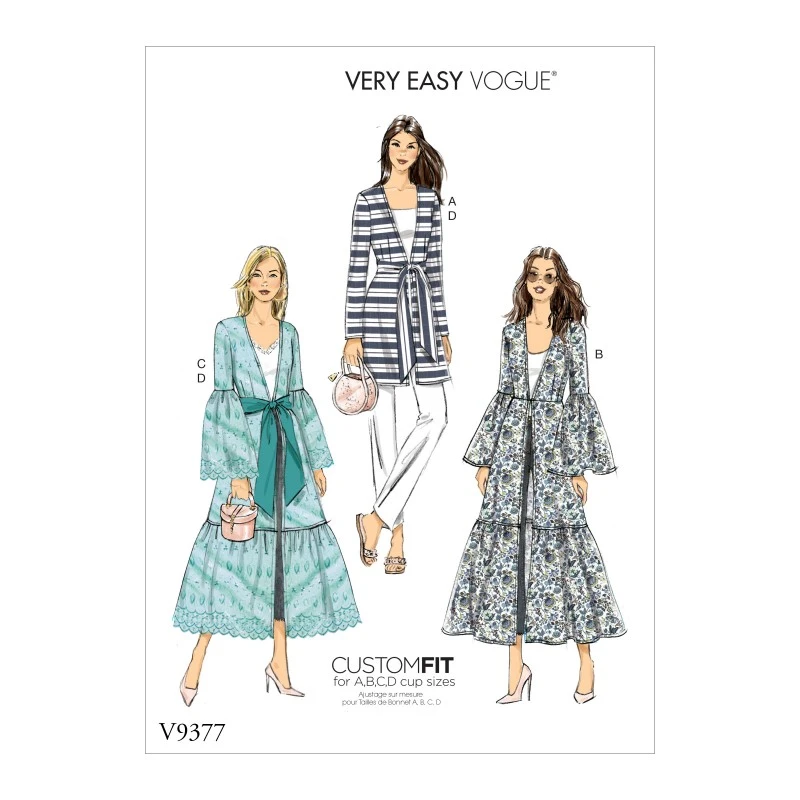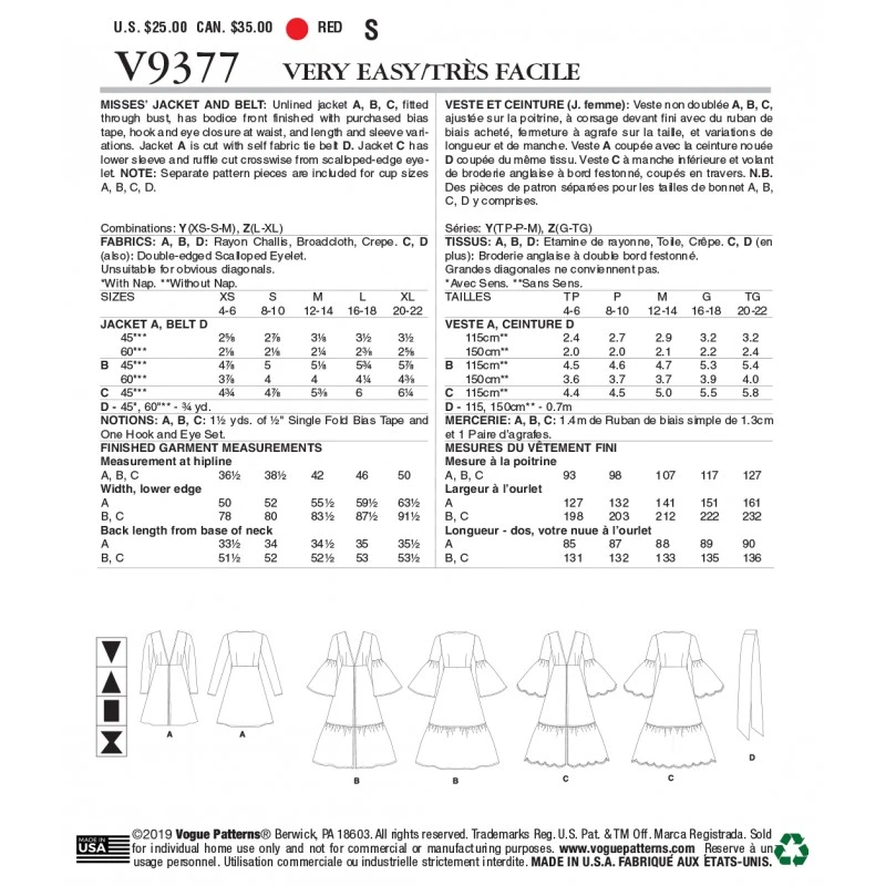 and length and sleeve variations. Jacket A is cut with self fabric tie belt D. Jacket C has lower sleeve and ruffle cut crosswise